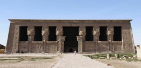 Ce temple respecte les traditions ancestrales. Il fut commencé par la construction du sanctuaire, lieu où le Naos (bloc monolithe de granit noir de plus de 4m de haut) est toujours en place. Ce temple est l’équivalent masculin du temple de Hathor à Dendérah.